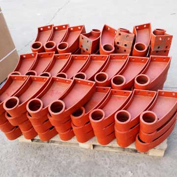 護(hù)欄支架工藝:砂模成型——砂模硬化——電爐澆鑄——半成品成型——噴砂處理——噴漆——成品。
