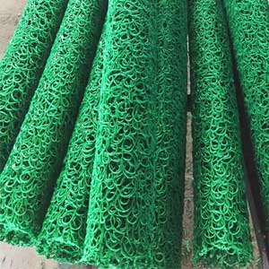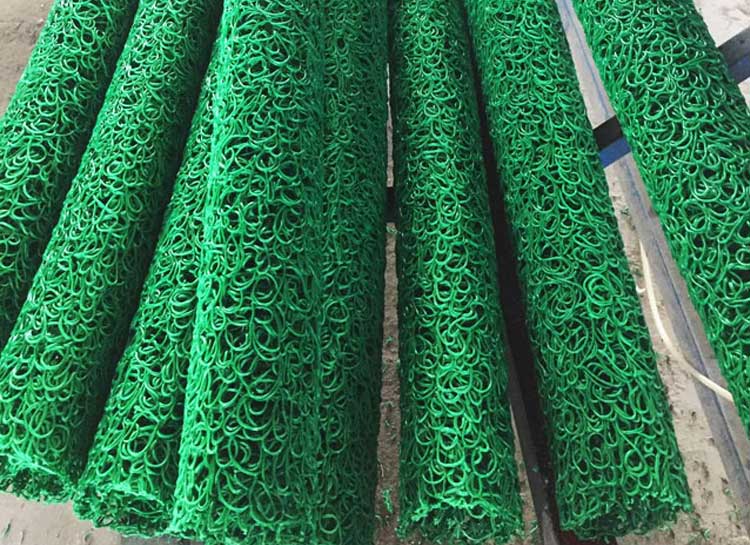 塑料盲溝是由塑料芯體外包裹濾布組式。塑料芯體是以熱可塑性合成樹脂為主要原料,經過改性,在熱熔狀態下,通過噴咀擠壓出細的塑料絲條,再通過成型裝置將擠出的塑料絲在結點上熔接,形成三維立體網狀結構。