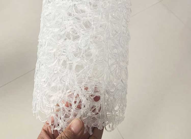 ②由于是立體結構,其空隙率為80-95%,構成空間與管理同且輕便,抗壓性能比管結構的樹脂強10倍以上,因此,即使因超負荷被壓,但由于是立體結構,故殘余空隙也達50%以上,不存在不通水的問題,無需考慮會被土壓力壓壞。
