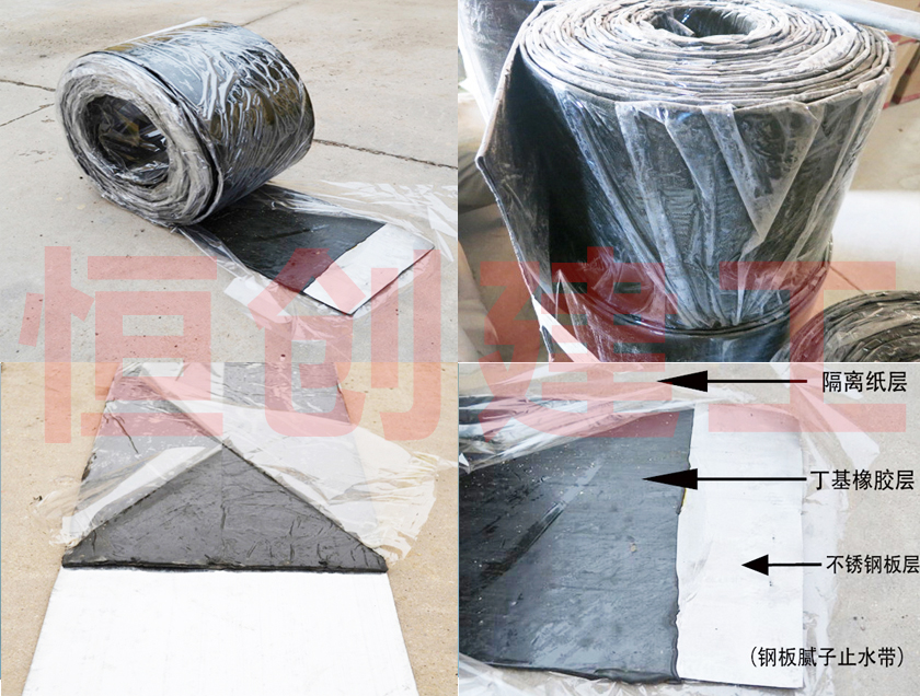 鋼板膩子止水帶是我公司開發(fā)的一種新產(chǎn)品.它是一種由特種橡膠、防老劑等材料,經(jīng)混煉、擠壓后與鍍鋅鋼板粘合而成的一種新型接縫防水、止水產(chǎn)品。能防止各種荷載下產(chǎn)生的彈性、變形及施工縫的溫差變化,起到堅固密封。能有效的防止施工縫漏水,滲水,并對各種作用力起到緩沖作用。鋼板膩子止水帶為綜合性能優(yōu)良的高分子材料與鍍鋅板復合而成的止水產(chǎn)品。橡塑膩子主體材料為耐老化性能優(yōu)良的橡塑材料,具有特強的自粘性;夏季高溫不流淌。冬季低溫不發(fā)脆;并具有優(yōu)異的耐水、耐酸堿和耐老化性能;使用壽命長,產(chǎn)品本身無毒,環(huán)境良好。為了承受一定的彎曲和壓力。中間來有0.4或0.6mm的鋼板。鋼板膩子止水帶對建筑縫之間提供可靠的防水、防滲功能。鋼板膩子止水帶系列產(chǎn)品包括各種規(guī)格型號的產(chǎn)品,并可根據(jù)用戶要求,生產(chǎn)各種型號的鋼板膩子止水帶,滿足工程上的實際需要。