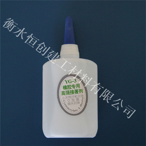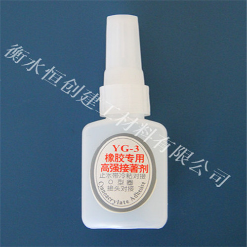 2.橡膠止水帶接頭用膠水YG-3是我公司專業(yè)開(kāi)發(fā)的橡膠止水帶膠水、一款用于橡膠(包括天然橡膠、丁晴橡膠、氯丁橡膠、三元一丙膠等)、金屬及塑料之間相互粘接的樹(shù)脂型環(huán)保膠粘劑。外觀為透明流動(dòng)液體,單組份,常溫下吸潮固化,初步定位時(shí)間一般為5-10min, 產(chǎn)品完全固化時(shí)間一般為24-48小時(shí)(室溫25℃)。